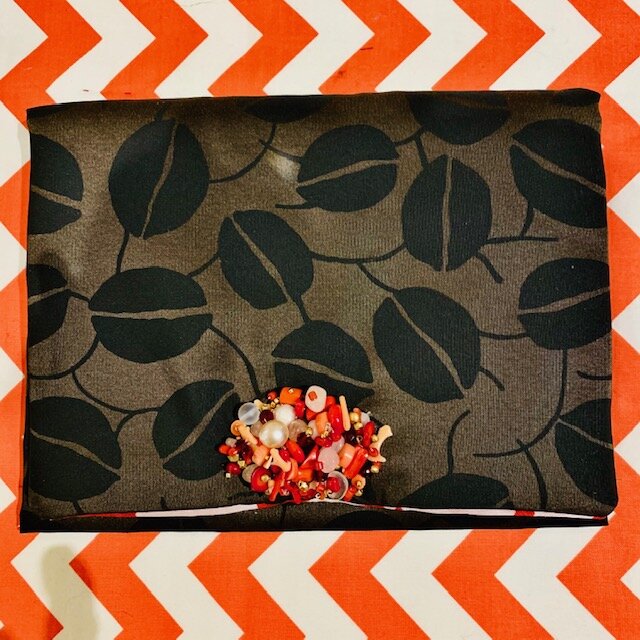 100% silk exterior, silk lining. Gemstone, real pearls and semi-precious stone encrusted. Custom orders are available for $675 . Please email Gail at gail@gailmonaghan.com or by clicking here.